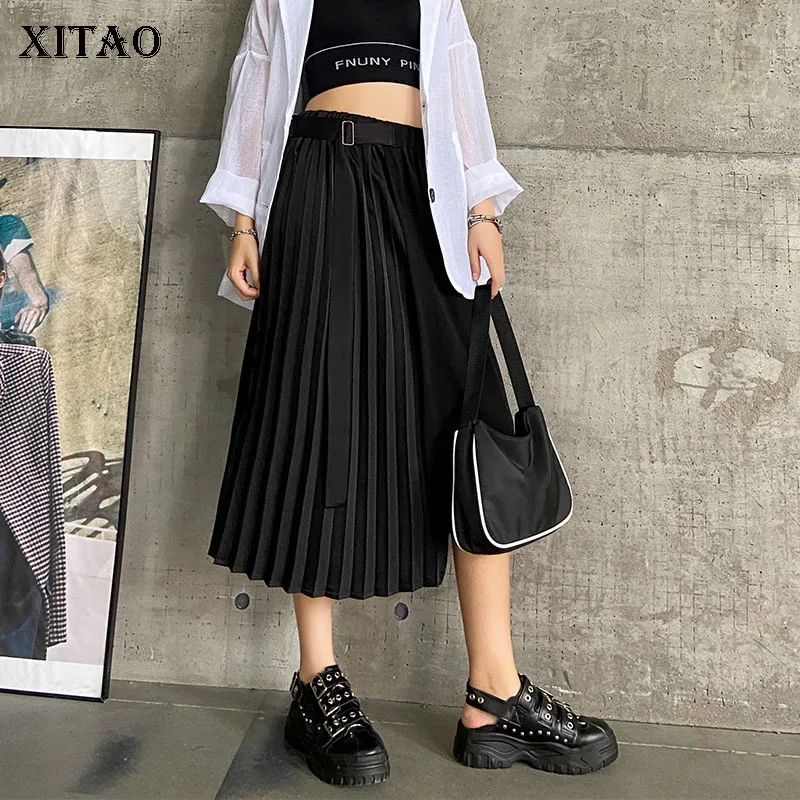 Get XITAO Irregular Black Skirt Fashion New Women 2020 Elegant Goddess Fan Pleated Pocket Small Fresh Casual Loose Skirt ZP1684 only US $20.77 just for today